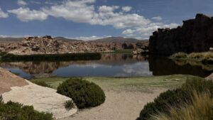 Así fue como decidimos avanzar hacia Bolivia, hacia ese territorio tan despreciado pero donde la tierra parece recordar su origen mineral y el cielo se vuelve espejo infinito . Conversamos con distintos guías, buscando no solo transporte, sino complicidad, alguien que entendiera que no viajábamos para tachar destinos, sino para demorarnos lo que fuera necesario Y lo encontramos, un guía local amable, conocedor de los ritmos invisibles, que nos llevó por humedales altoandinos donde el viento y la calma inundaban nuestras miradas mareadas y apunadas.